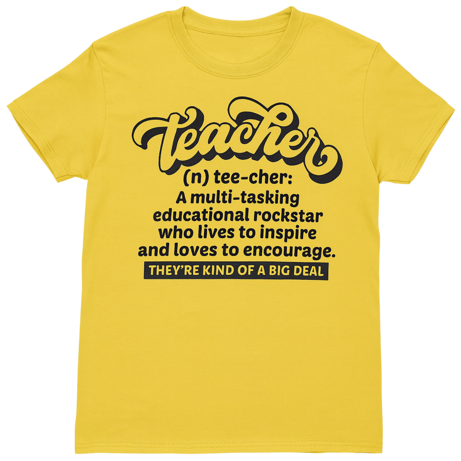 Celebrate the extraordinary educator in your life with this Teacher Tee. Designed for the multitasking education rockstar who inspires and encourages every day, it’s a perfect way to show appreciation for their big-hearted dedication. Comfortable and stylish, this tee honors their passion and kindness, reminding everyone that teachers truly are kind of a big deal.